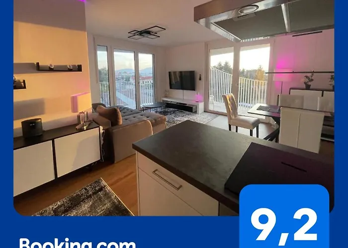 Luxusapartment Mit Grosser Terrasse, E-Parkplatz Und Parkplatz Graz o powierzchni 100 m^2 leży w pobliżu ogrodów, a do dyspozycji Gości jest taras z widokiem na górę. Pobliskie atrakcje to Muzeum Sztuki w Graz, 15 min jazdy od tego apartamentu oraz Kastner & Öhler - 6 km stąd.